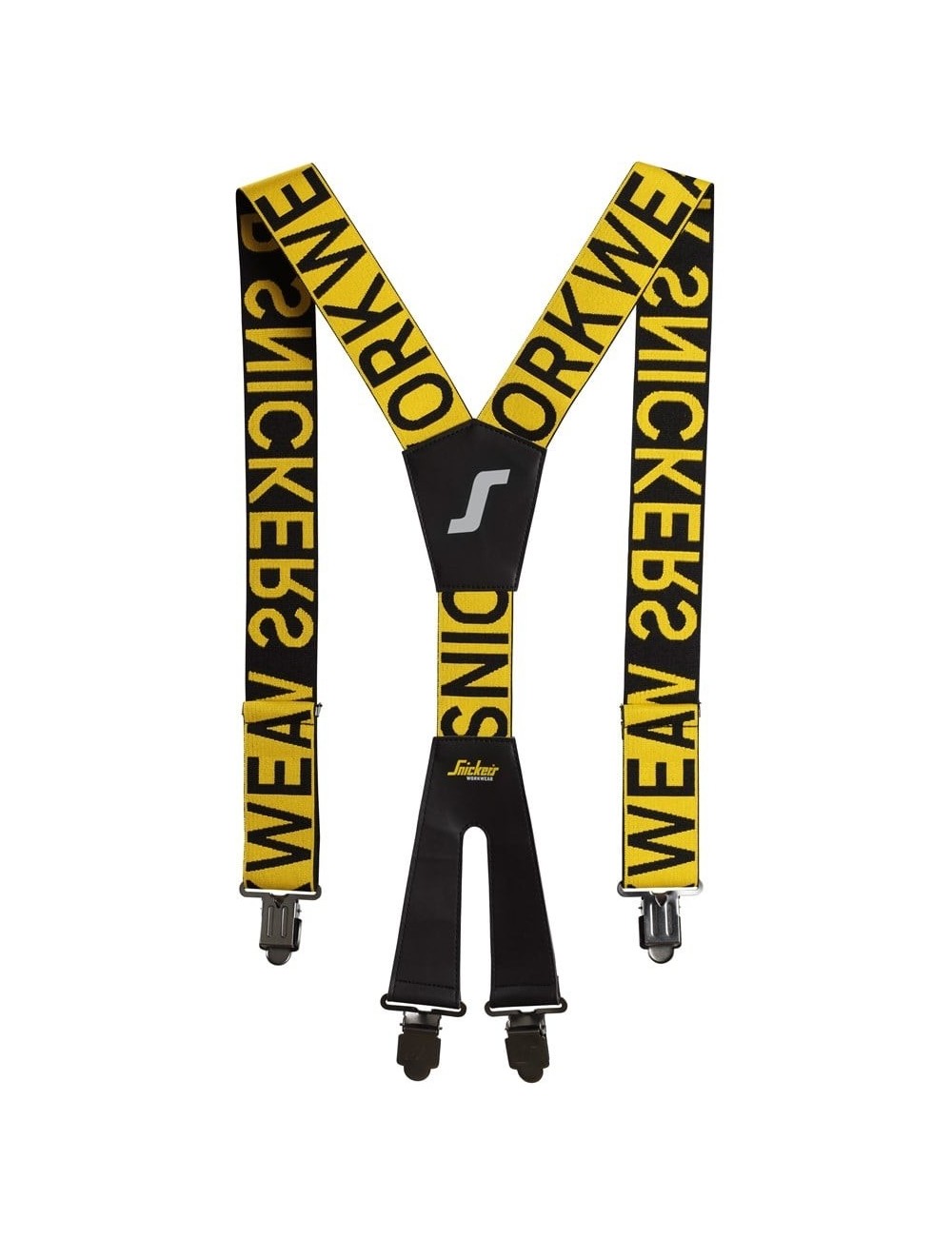 Pracovní šle Snickers 9064 v černé a žluté barvě s viditelným logo výrobce po celé délce. Vysoce kvalitní, flexibilní a odolné materiály zajišťují, že vaše kalhoty zůstanou na místě, aniž by se cítily těsné, a jsou pohodlné na nošení. Zkřížené ramínka ve tvaru X vzadu. Jsou vybaveny kovovými klipy pro připevnění ke kalhotám a přezkami pro nastavení délky. K dispozici v jedné univerzální velikosti.