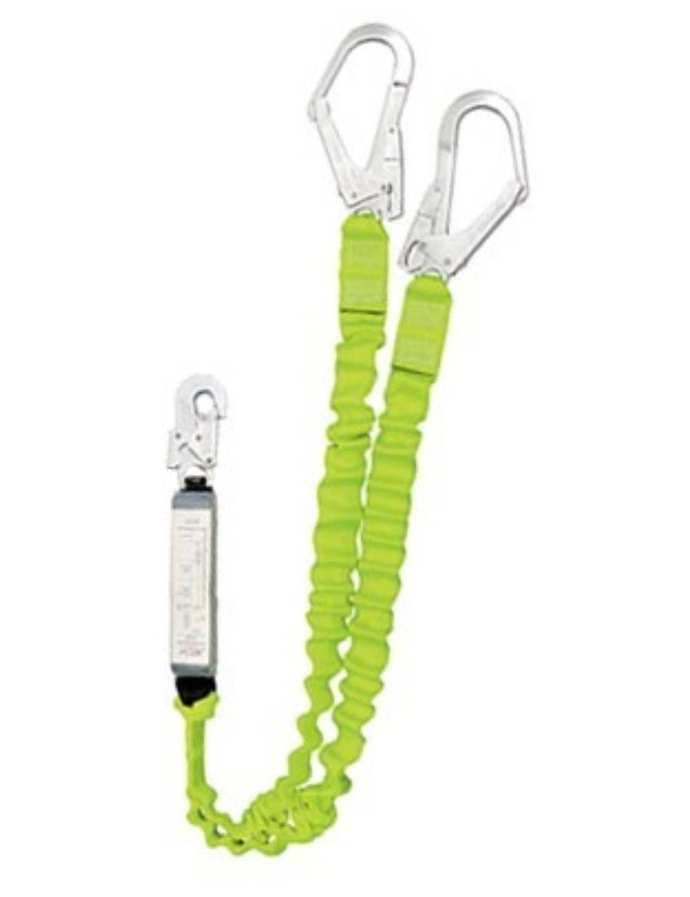 Tento flexibilní dvojitý bezpečnostní tlumič nárazů je určen pro jistící práce ve výškách. Dvě velké karabiny se připevňují ke kotevním bodům a jsou zajištěny flexibilním, roztažitelným popruhem, což usnadňuje připevnění a zabraňuje zachycení o konstrukční prvky. Tento produkt je obzvláště doporučován pro práce na lešení.