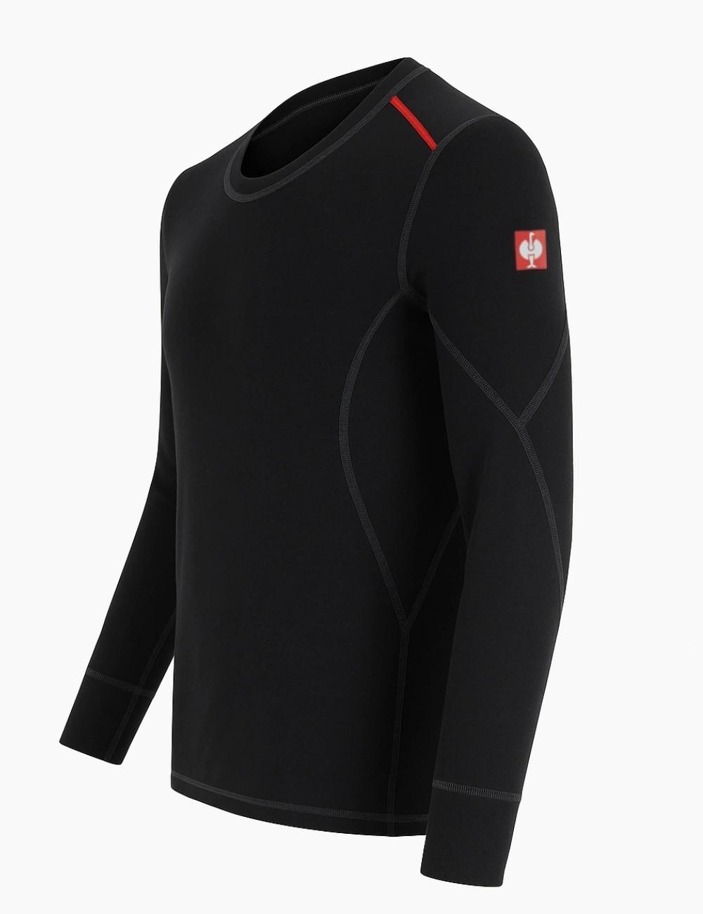 - Okrągły dekolt – klasyczny, wygodny krój pasujący pod każdą odzież roboczą.