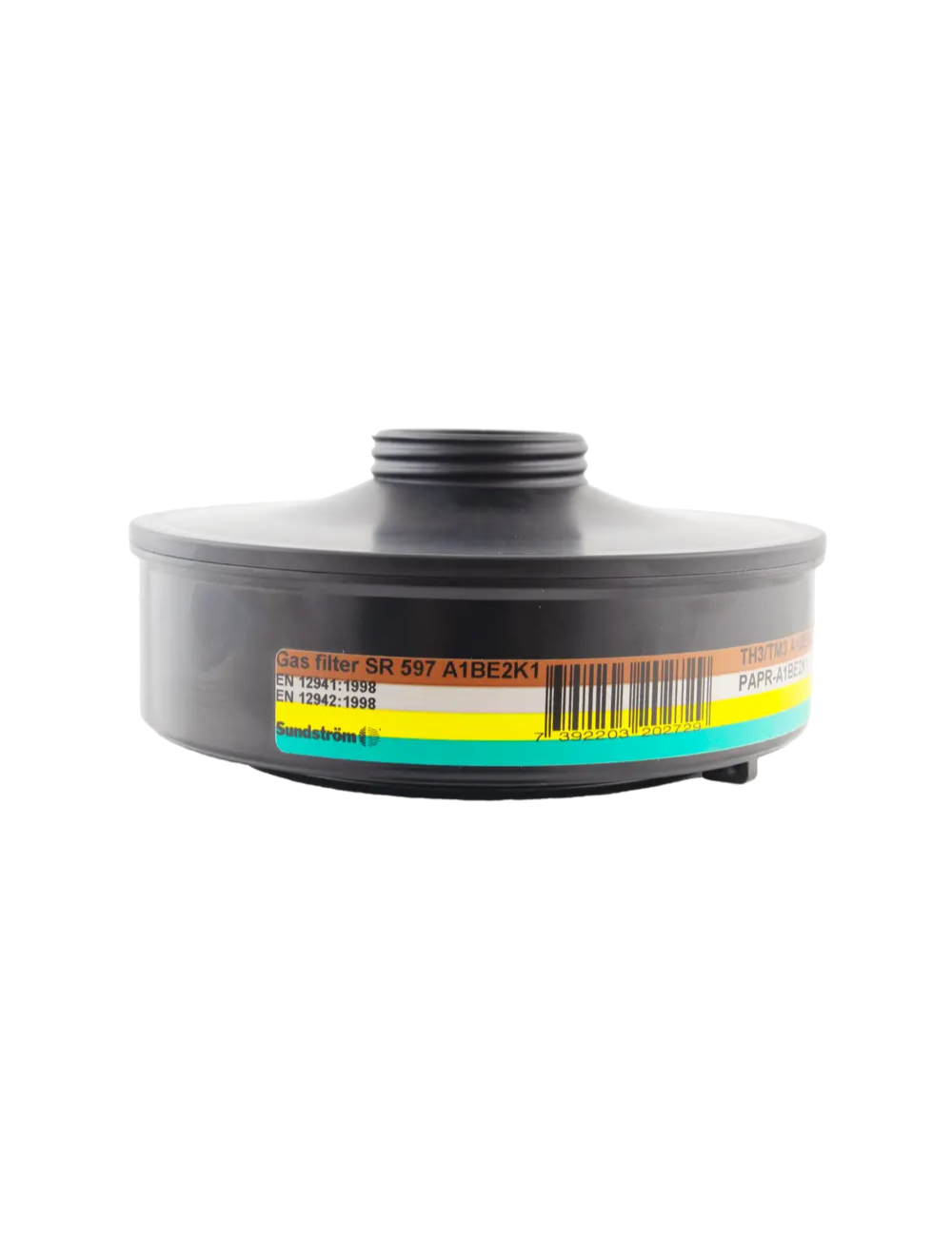 R 597 A1BE2K1 je absorbér plynů a par určený pro systémy ochrany dýchacích cest s nuceným prouděním vzduchu.