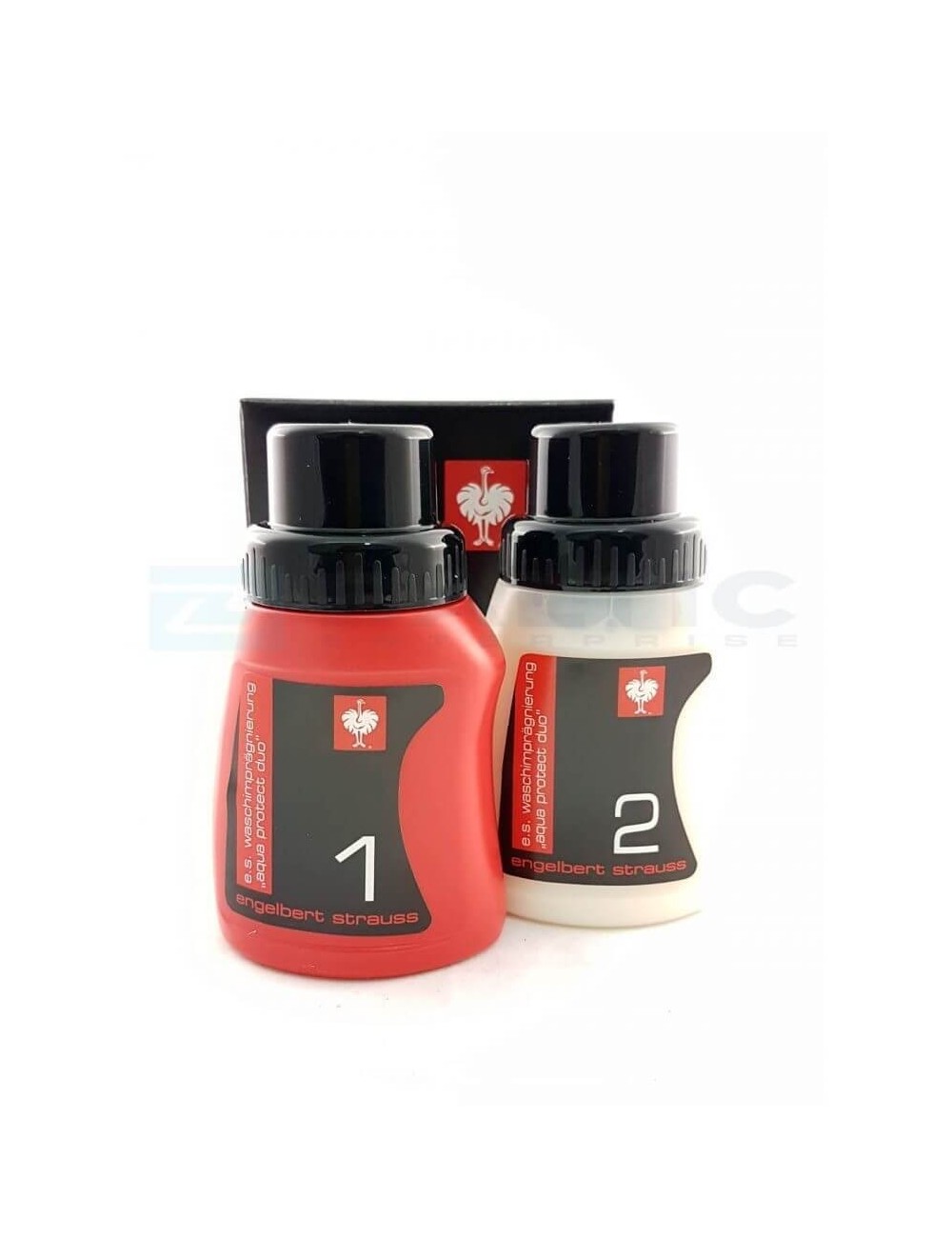 Sada pro impregnaci oděvů Engelbert Strauss , která obsahuje impregnační prostředky „aqua duo 1“ a „aqua duo 2“. Účinná impregnace oděvů pratelných v pračce. Vhodná pro džíny, kalhoty, mikiny, pracovní bundy a softshellové bundy. Impregnovat lze cokoli! Zvláště se doporučuje pro větruodolné a nepromokavé bundy a kalhoty, kde poskytuje trvalou ochranu a ochranu proti promočení. Zachovává vodoodpudivost a zároveň prodyšnost materiálů. Účinná ochrana proti nečistotám, oleji, prachu a skvrnám. Oba produkty mají objem 150 ml. Dostatečné pro impregnaci přibližně 4 kg prádla. Šetrné k životnímu prostředí.