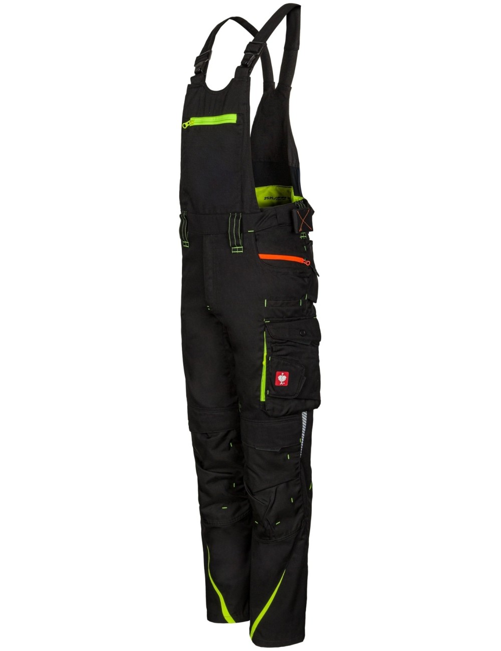 Milujete kalhoty Motion 2020, ale raději pracujete v laclu? Máme řešení. Ladře esmotion 2020 se vyznačují systémem flex-belt, výztuhami na kolenou cordura a spolehlivými větracími otvory na stehnech. Ergonomický klínek v rozkroku přenáší napětí ze švů na látku a prodlužuje tak životnost této části kalhot. Kalhoty jsou vysoce odolné díky trojitému prošívání na vnitřní straně nohavic. Disponují množstvím užitečných kapes: dvěma bočními a dvěma zadními kapsami vyztuženými Cordurou a kapsou na mobilní telefon. Zesílená byla také kapsa na pravítko a vícekomorová kapsa na stehně. Tyto kalhoty mají také kapsy na chrániče kolen se zapínáním na suchý zip v horní části. Oblast kolen je také vyztužena Cordurou. Větrací otvory na zip se nacházejí na zadní straně obou stehen. Decentní reflexní prvky podél kalhot zlepšují viditelnost po setmění.