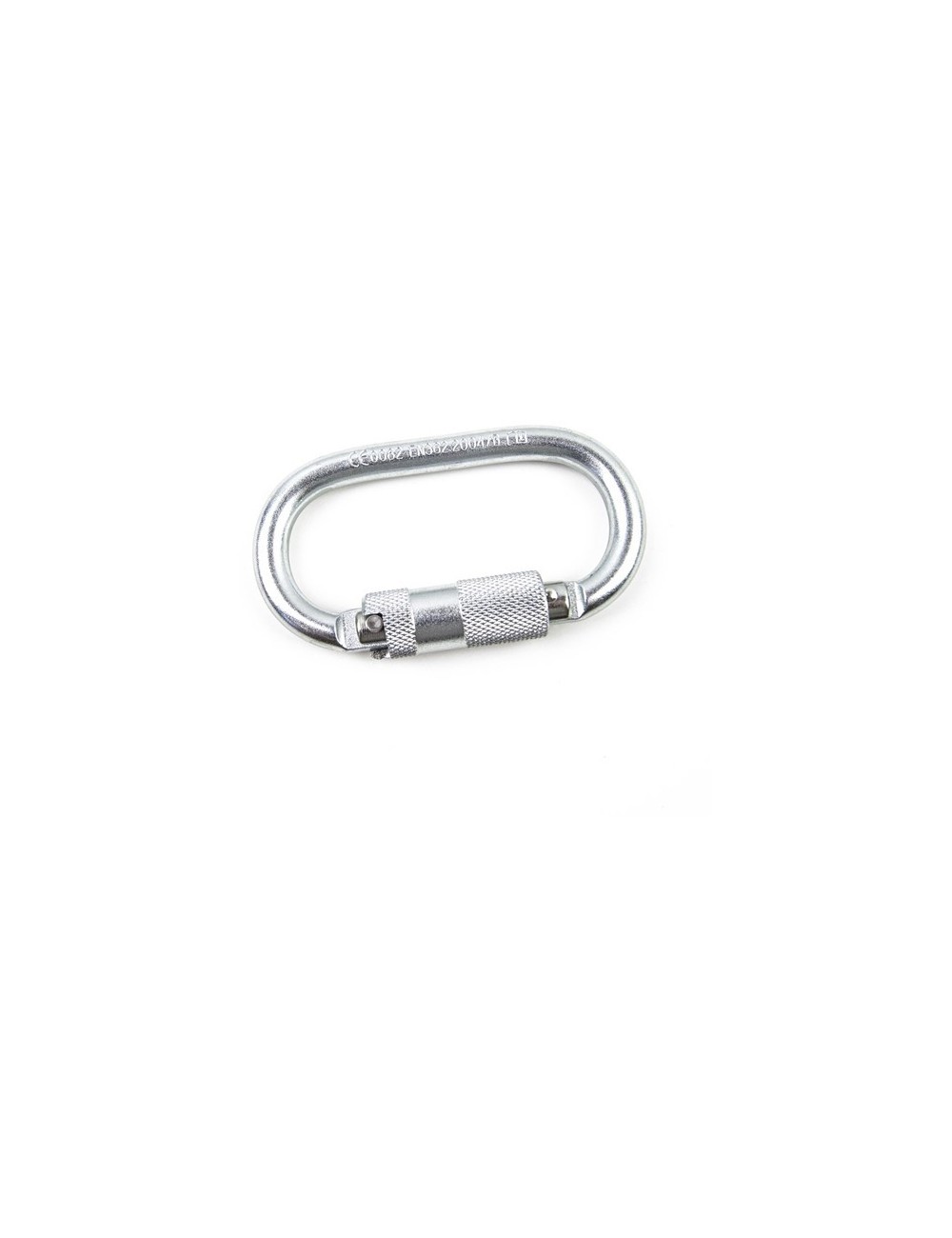 Oválná bezpečnostní karabina se šroubovací pojistkou a pevností do 25 kN. Bezpečnostní certifikát EN 362.