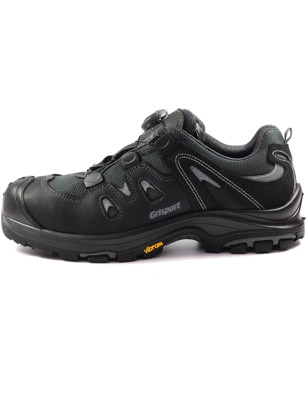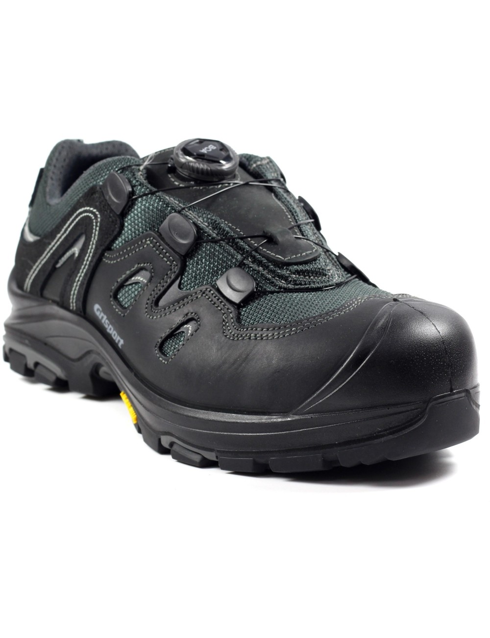 Bardzo wytrzymałe półbuty robocze Grisport Imola o klasie ochrony S3. Wykonane z wysokiej jakości olejowanej skóry bydlęcej Dakar. Wyposażone we wkładkę antyprzebiciową oraz stalowy podnosek dla zapewnienia bezpieczeństwa w czasie pracy. Podeszwa Vibram znana z obuwia górskiego i trekkingowego poprawia przyczepność z podłożem, doskonale amortyzuje oraz stabilizuje stopę. Odporna jest na ścieranie, poślizg, a także działanie olei. Skutecznie zwiększa żywotność obuwia, a także zmniejsza zmęczenie oraz zwiększa bezpieczeństwo użytkownika. Buty męskie wyposażone są także w nowoczesny system wiązania BOA, który pozwala na szybkie i łatwe zakładanie oraz ściąganie obuwia. Regulowane pokrętło zamiast klasycznych sznurowadeł pozwala na równomierne oraz stabilne dopasowanie półbutów roboczych do stopu. Model ten spełnia wymagania normy EN ISO 20345:2011 – UNI EN ISO 20345:2012, S3, SRC.