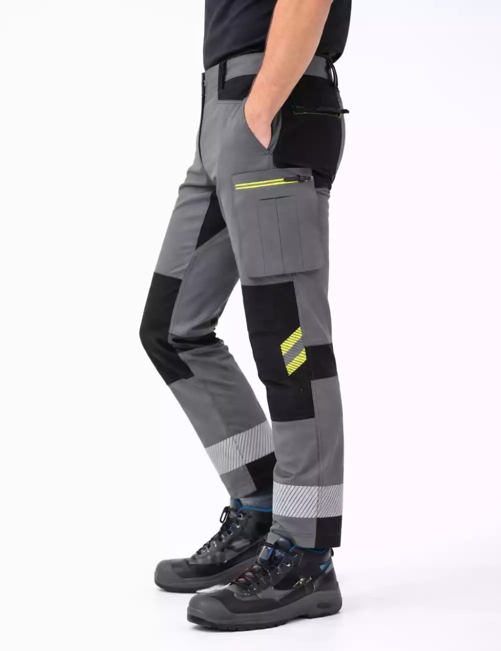 Jsou ideální pro práci v interiéru i exteriéru, kde dodatečné reflexní pruhy zlepšují viditelnost uživatele – např. v logistice, montáži a obecném stavebnictví. - Mají kalhoty kapsy na chrániče kolen?