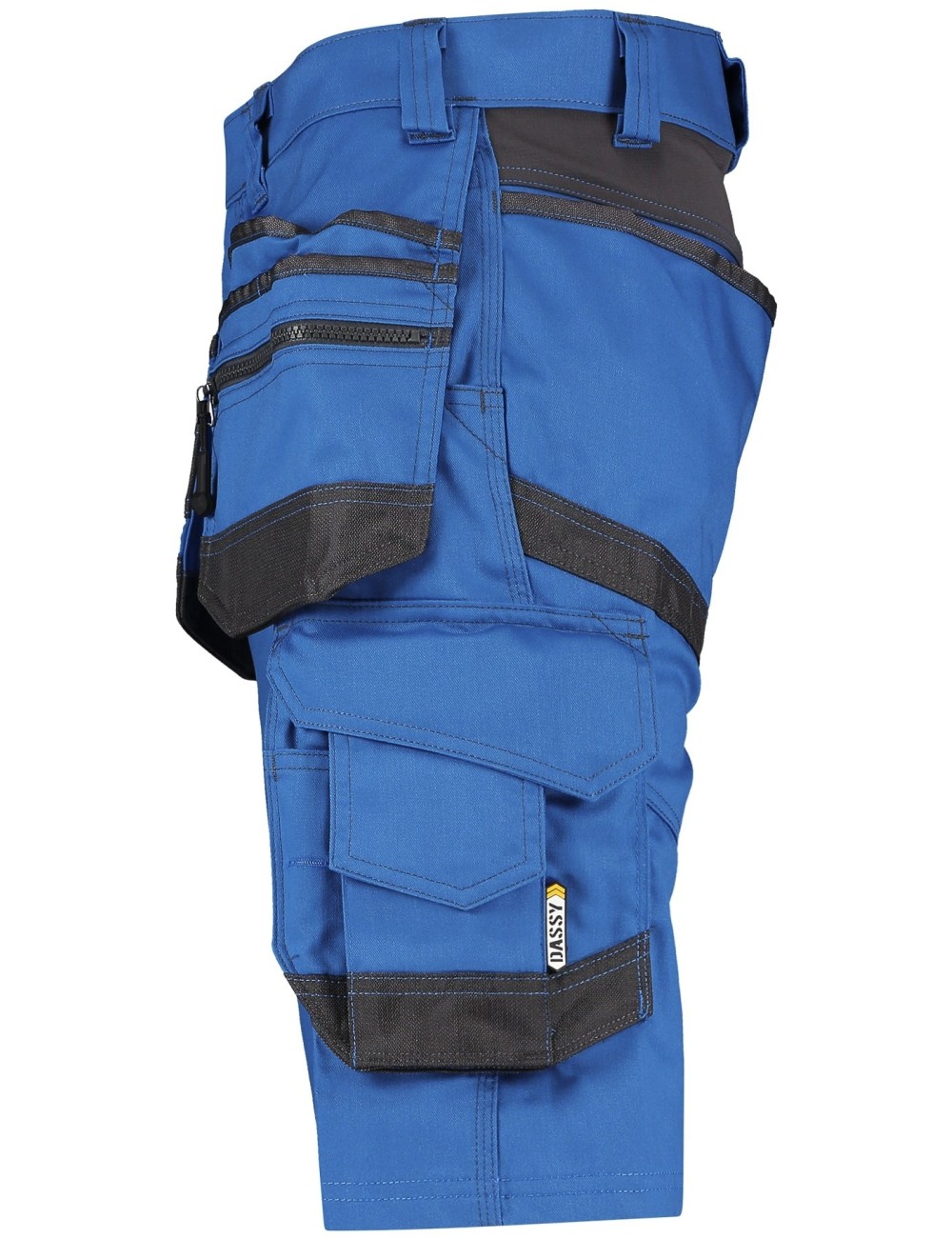 Pracovní kraťasy Dassy Trix jsou nepostradatelnou volbou letního pracovního oblečení. Tyto mimořádně odolné kraťasy jsou vyrobeny ze směsi 65 % polyesteru a 35 % bavlny s gramáží 245 g/m². Odolný materiál je pružný na všech čtyřech stranách a byl testován na škodlivé látky dle OEKO-TEX ® Standard 100. Trix Dassy zajišťuje dodatečnou odolnost. Kraťasy mají nízký pas a úzký střih. Pro větší pohodlí mají elastický pas. Zapínání na zip a skrytý knoflík je zajištěno řadou praktických kapes na vaše nezbytné pracovní nářadí, m.in. kapsy na zip, dvou velkých předních kapes na nářadí, dvou zadních kapes a jedné boční kapsy na nohavici.