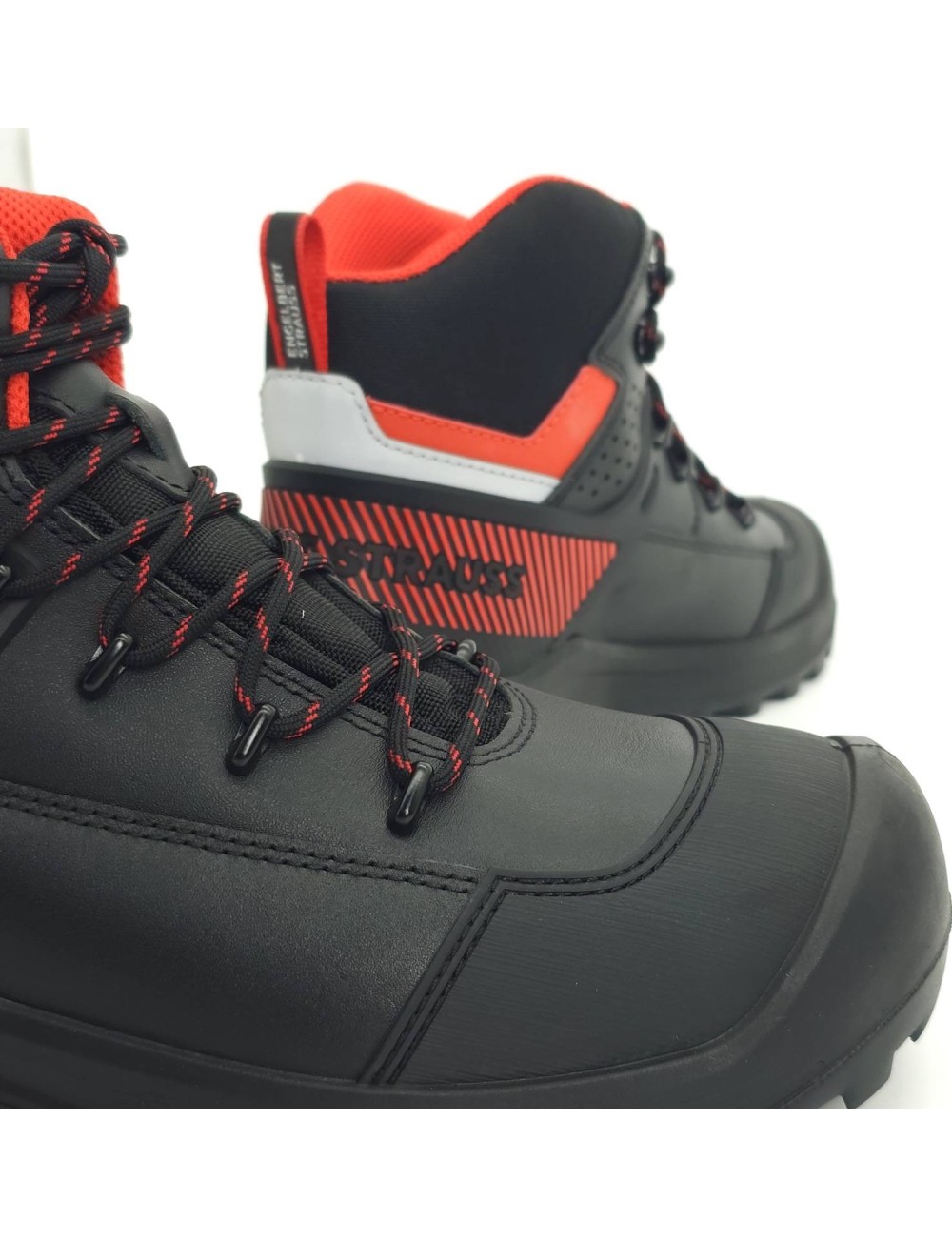 - Další ochranné prvky: Přední část boty má dodatečnou PUR ochranu, která je obzvláště užitečná při práci na kolenou, a uzavřená konstrukce jazyka zabraňuje vniknutí nečistot do boty.