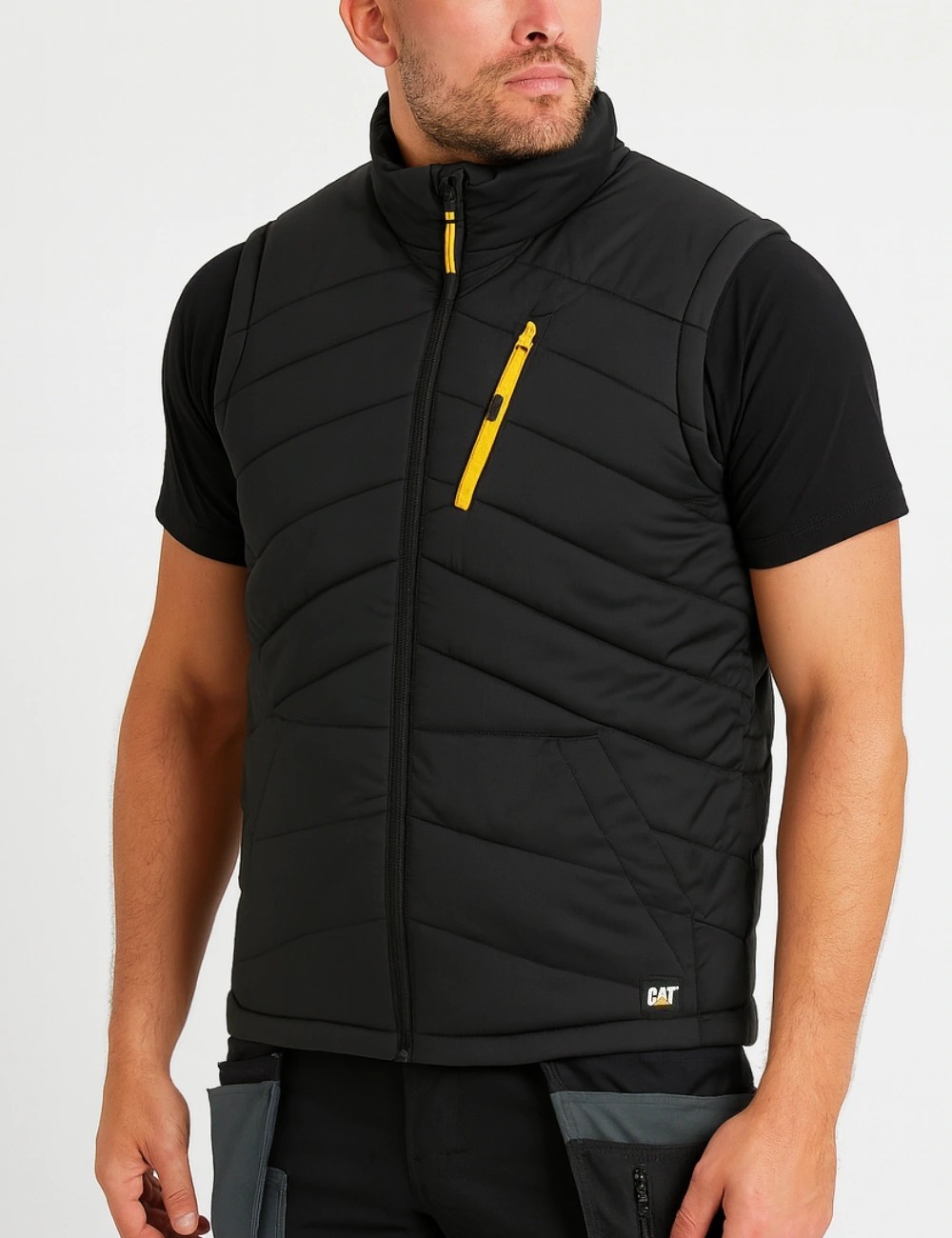 Vesta CAT Essential je vyrobena ze 100% odolné, vysoce gramážní nylonové ripstop tkaniny s gramáží 320 g/m², díky čemuž je neuvěřitelně odolná. Její pohodlný střih a vysoký stojáček poskytují vynikající ochranu před chladem a pohodlí. Tato pracovní vesta se zapíná na zip a má dvě boční kapsy, kontrastní náprsní kapsu na zip a vnitřní kapsu se zapínáním na suchý zip. Tato pánská vesta je zdobena silikonovou nášivkou s logem CAT . Díky jednoduchému designu je vhodná jak do práce, tak i pro volný čas.