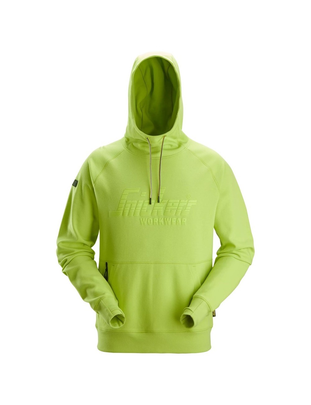 - Nastavitelná kapuce s tříbarevnou stahovací šňůrkou – výrazný detail ve žluté, černé a bílé barvě, který zdůrazňuje styl Snickers Workwear .