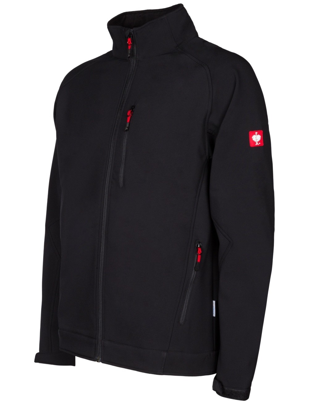 Softshell wykonany został w 100% z oddychającego, wiatroodpornego i wodoodpornego poliestru. Lekki i elastyczny, wewnątrz całkowicie obłożony polarem. Wysoki kołnierz pokryty mikropolarem. Zapinany na kostkowy zamek błyskawiczny. Zamki w kontrastowym, czerwonym kolorze. Produkt posiada 2 boczne kieszenie oraz kieszeń na piersi, każdą zapinaną zamkiem błyskawicznym. Polar ma regulowane na rzep mankiety dla optymalnego dopasowania do sylwetki osoby noszącej. Na lewym ramieniu naszyte logo Engelbert Strauss.