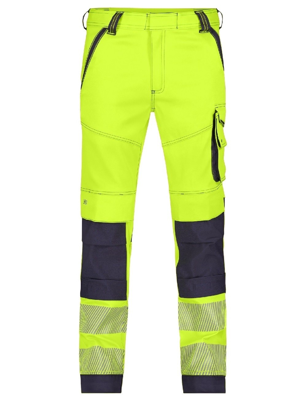 Elastyczne spodnie robocze w jasnych, ostrzegawczych kolorach zapewniają świetną widoczność w czasie pracy. Fluorescencyjne kolory z taśmami odblaskowymi o szerokości 80 mm sprawią, że użytkownik jest wyjątkowo widoczny i bezpieczny. Spodnie robocze o dopasowanym kroju wykonane zostały z 2-kierunkowego stretchu, który jest elastyczny i świetnie dopasowuje się do ciała. Niezwykle wytrzymałe – gramatura materiału aż 270 g/m2. Wzmocnione potrójnymi szwami w kontrastowych kolorach oraz szerokim obszyciem. Wyposażone w wiele praktycznych kieszeni – regulowane kieszenie na kolanach z materiału Cordura, kieszenie z przodu, tyłu, na nogawce, a także kieszeń na nóż i metrówkę. Dodatkowo posiadają szlufkę na identyfikator oraz uchwyt na nóż. Spodnie ostrzegawcze wolne są od szkodliwych substancji – mają certyfikat OEKO-TEX ® Standard 100.
