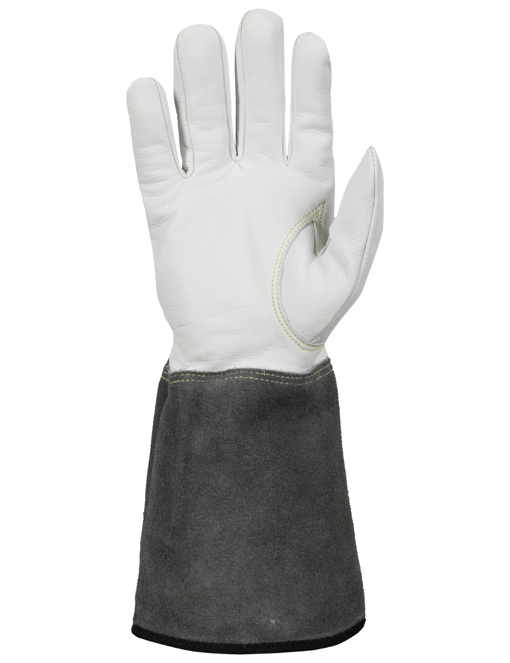 - Manžeta z hovězí štípané kůže – účinná ochrana zápěstí a předloktí před jiskrami a rozstřikem.